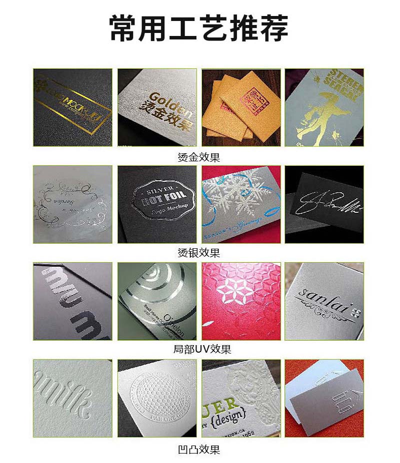 常用工藝:覆膜(啞膜、光膜)、壓紋、凹凸印、局部uv、燙銀、燙金、印專色(PANTONE色)、鏤空、鐳射、打孔、疊印、絲網(wǎng)印、透印、過光油、啞油等